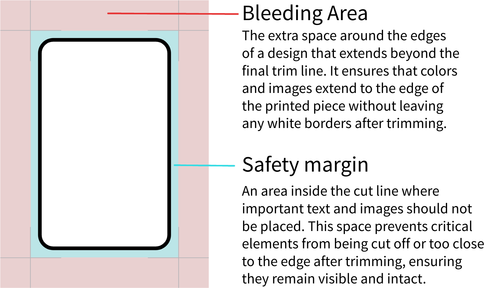 These frames have a bleed area (see further on) and a border. Feel free to modify them according to